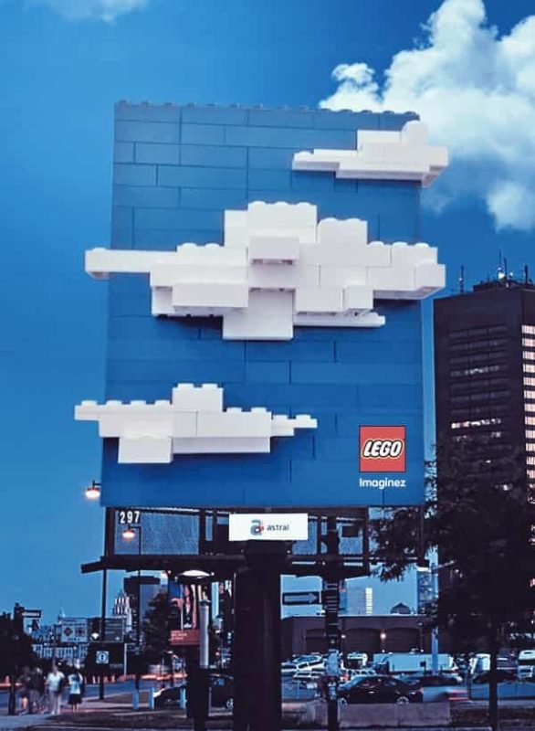 Một biển quảng cáo về LEGO không thể nào đậm chất LEGO hơn. Hình ảnh biển quảng cáo đã được thiết kế với sự sáng tạo đầy ấn tượng, dường như các tấm LEGO đang được xếp vào nhau để tạo thành một đám mây bắt mắt trên đường phố.