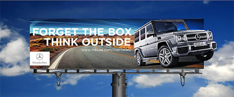Vượt qua mọi khuôn khổ với chiếc Mercedes Benz G Series chính là thông điệp mà hãng muốn gửi tới người tiêu dùng. Một chiếc biển quảng cáo kết hợp với một chút hiệu ứng 3D đã tạo ra một hình ảnh ấn tượng cực kỳ khó phai trong tâm trí người tiêu dùng.